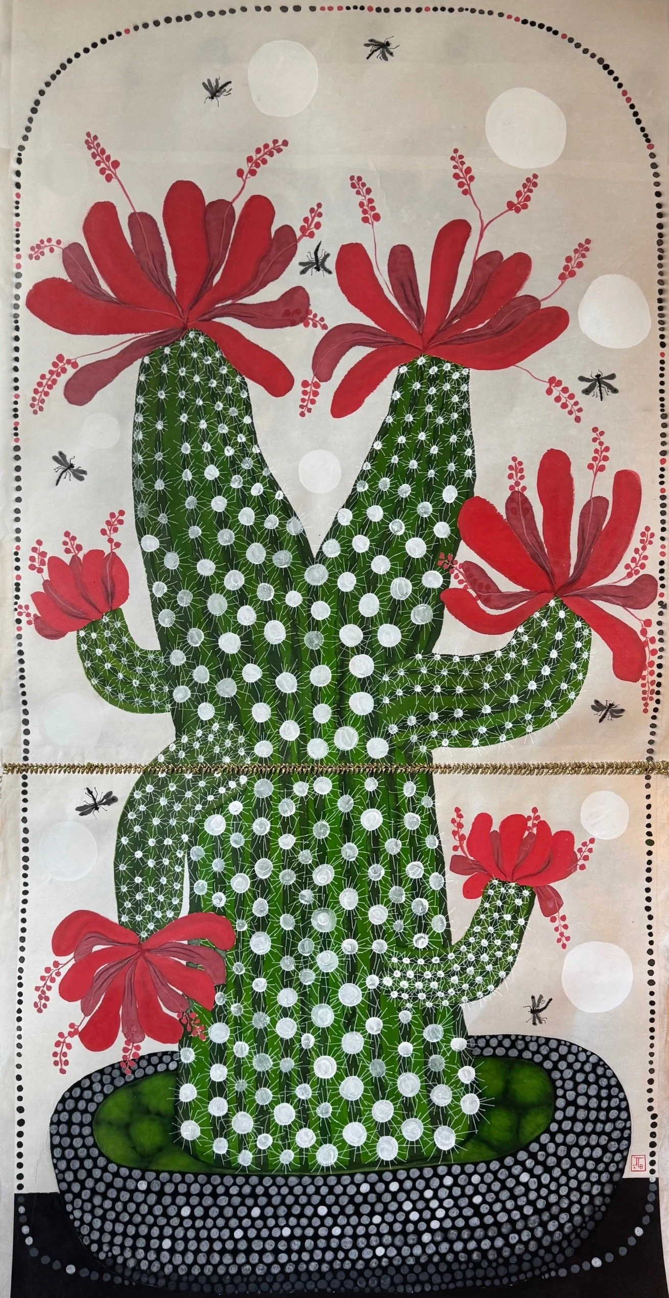 Mix media on rice paper, golden thread 110 x 70 cm